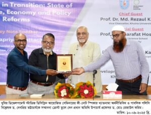 আজ ১০ সেপ্টেম্বর (বুধবার) বেলা ১১টায় খুলনা বিশ্ববিদ্যালয়ের ইউআরপি ডিসিপ্লিনের লেকচার থিয়েটারে ডিভেলপমেন্ট স্টাডিজ ডিসিপ্লিন আয়োজিত ‘Bangladesh in Transition: Governance, Economy and Policy Reforms’ শীর্ষক সেমিনারে কী-নোট স্পিকার হিসেবে বক্তৃতাকালে তিনি এ কথা বলেন।